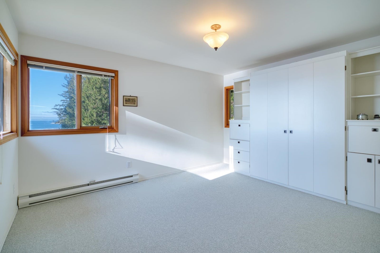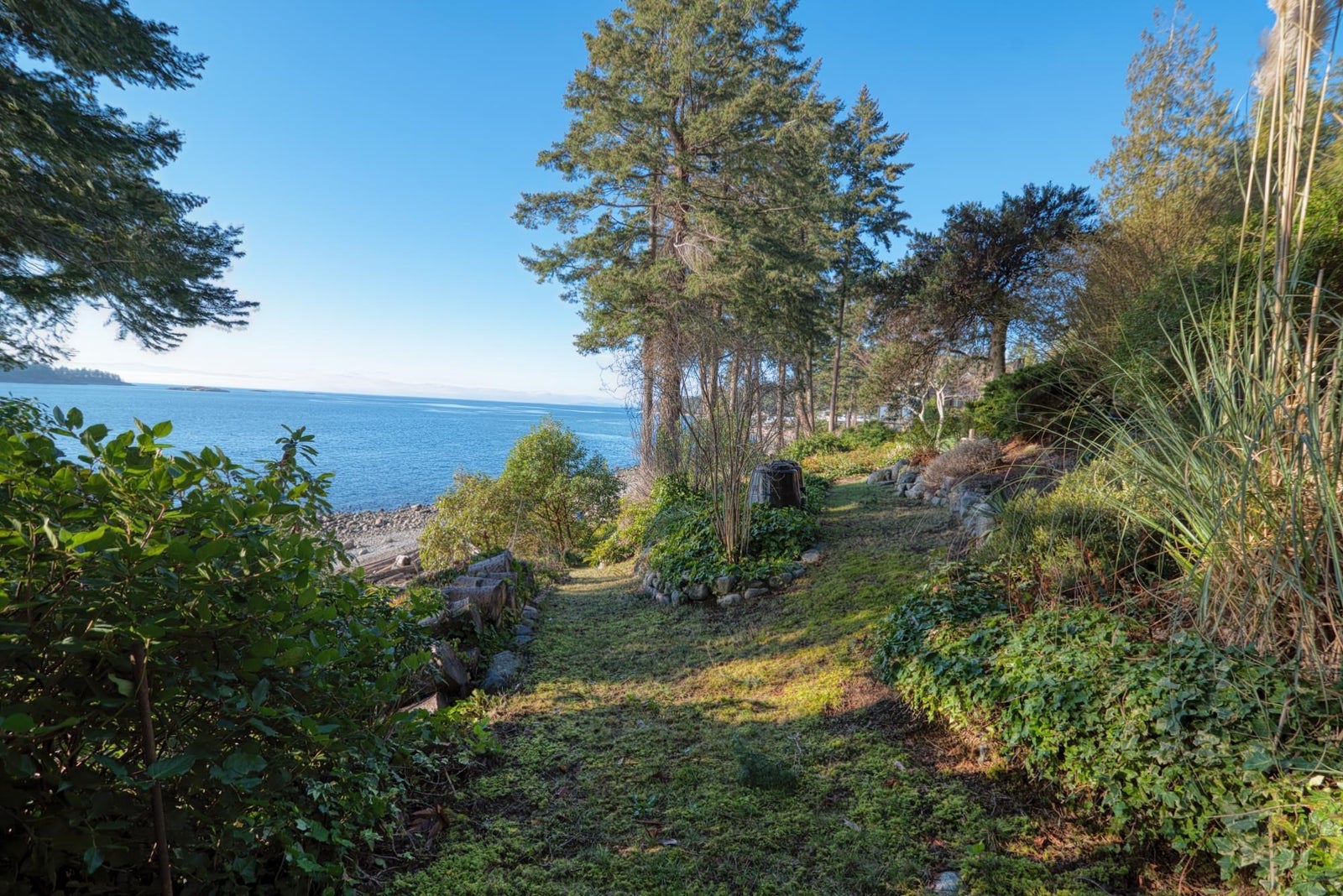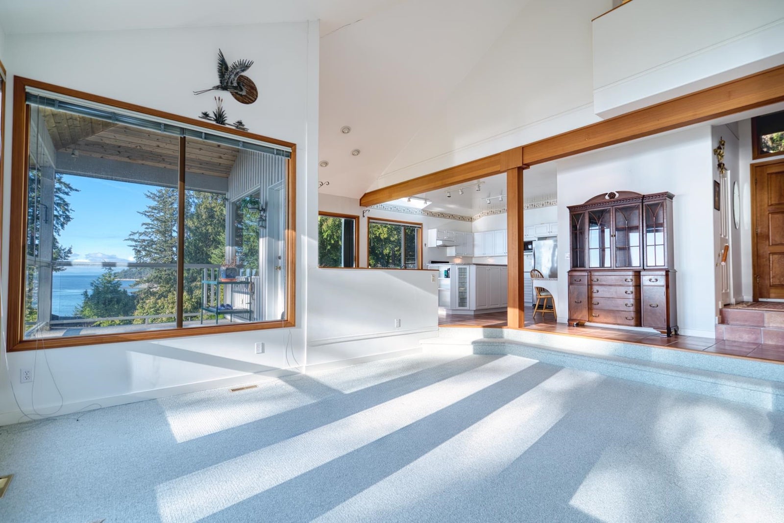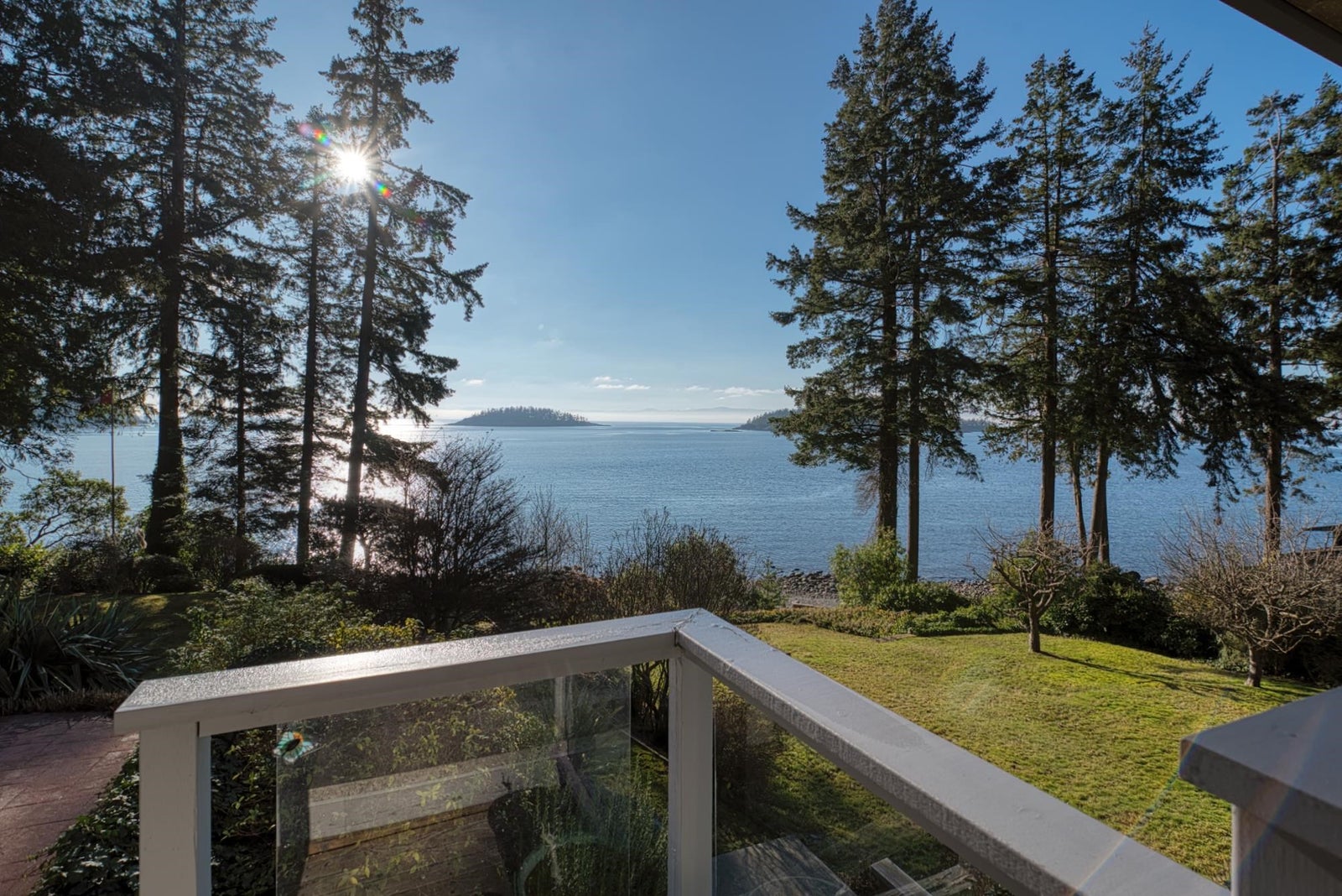 Breathtaking ocean views, captivating sunsets, and all-day-sun - this West Coast waterfront home features 3-beds, 3-baths on .45 acres with easy access to the beach! The large sunken living room is perfect for relaxing, while the expansive kitchen boasts a pantry with abundant storage. Enjoy meals in the roomy dining area with patio access where panoramic ocean vistas await. Upstairs there are two primary bedrooms one with patio doors opening up to stunning outdoor views, plus a cozy fireplace. Both bedrooms have their own ensuites. The main floor offers a 3rd bedroom or den with access to the patio and the level yard. Below is a versatile space ideal for hobbies, a home office, or a studio, complete with a separate entrance, a roughed-in bathroom, and a large utility room.