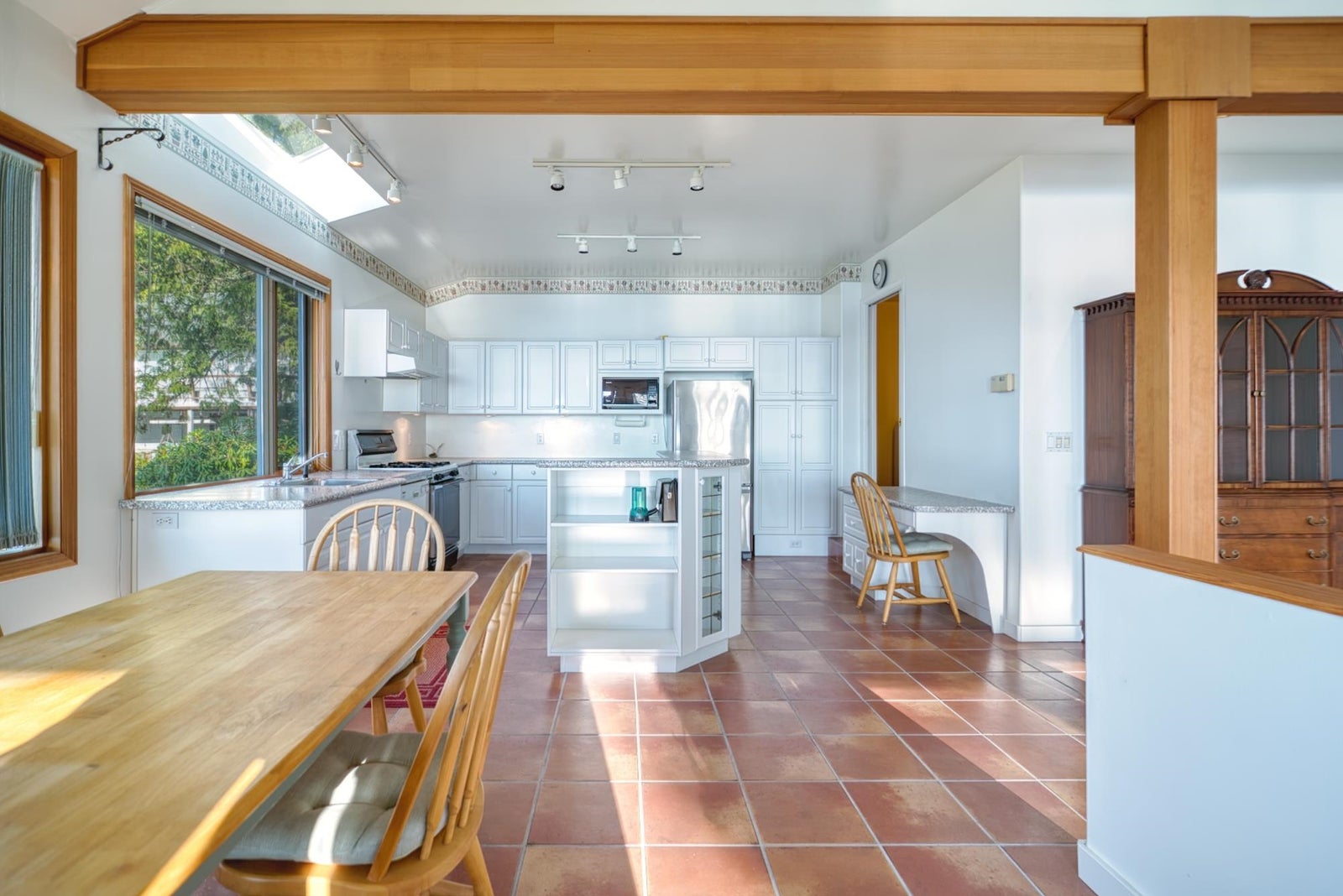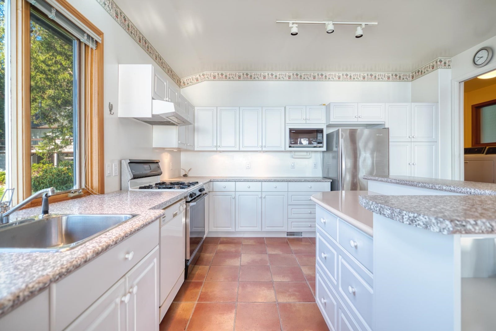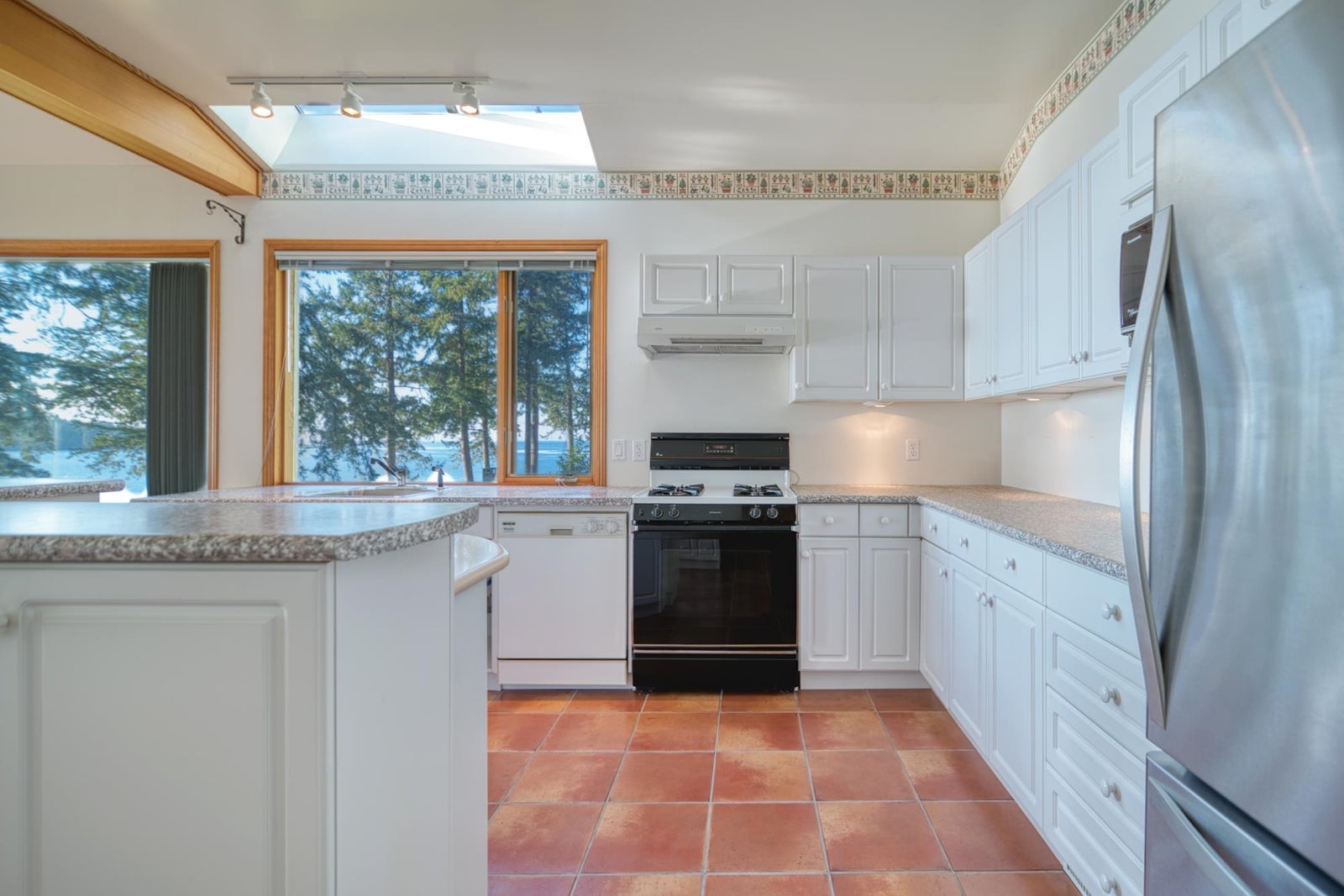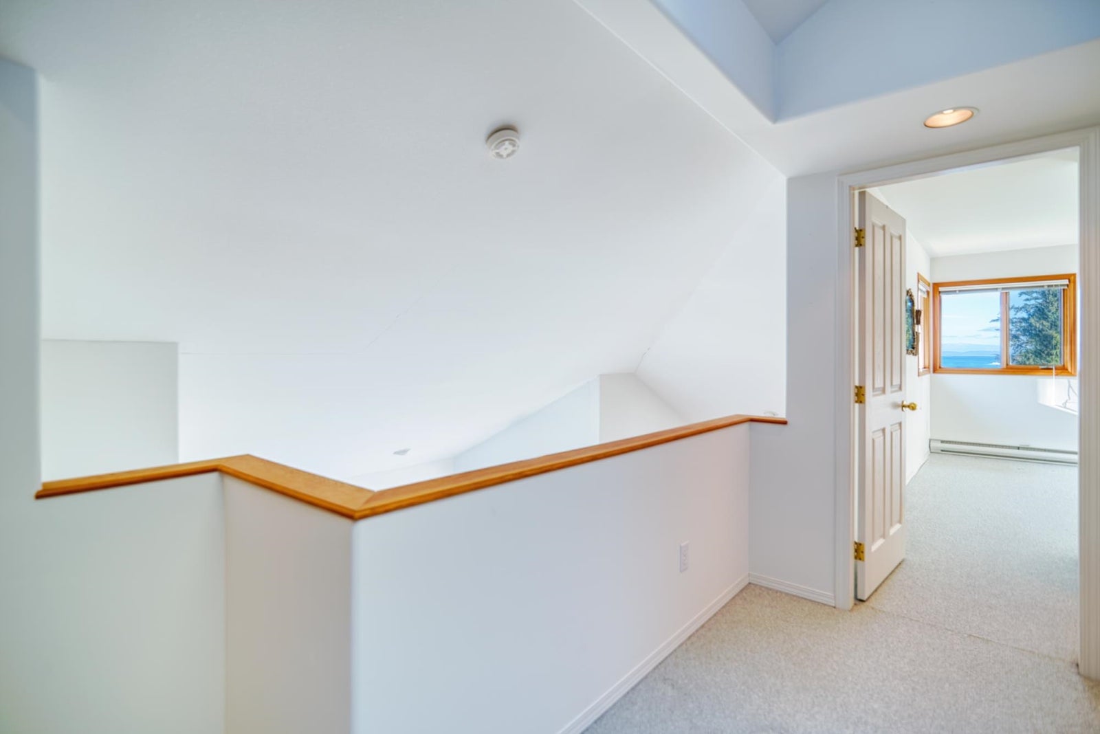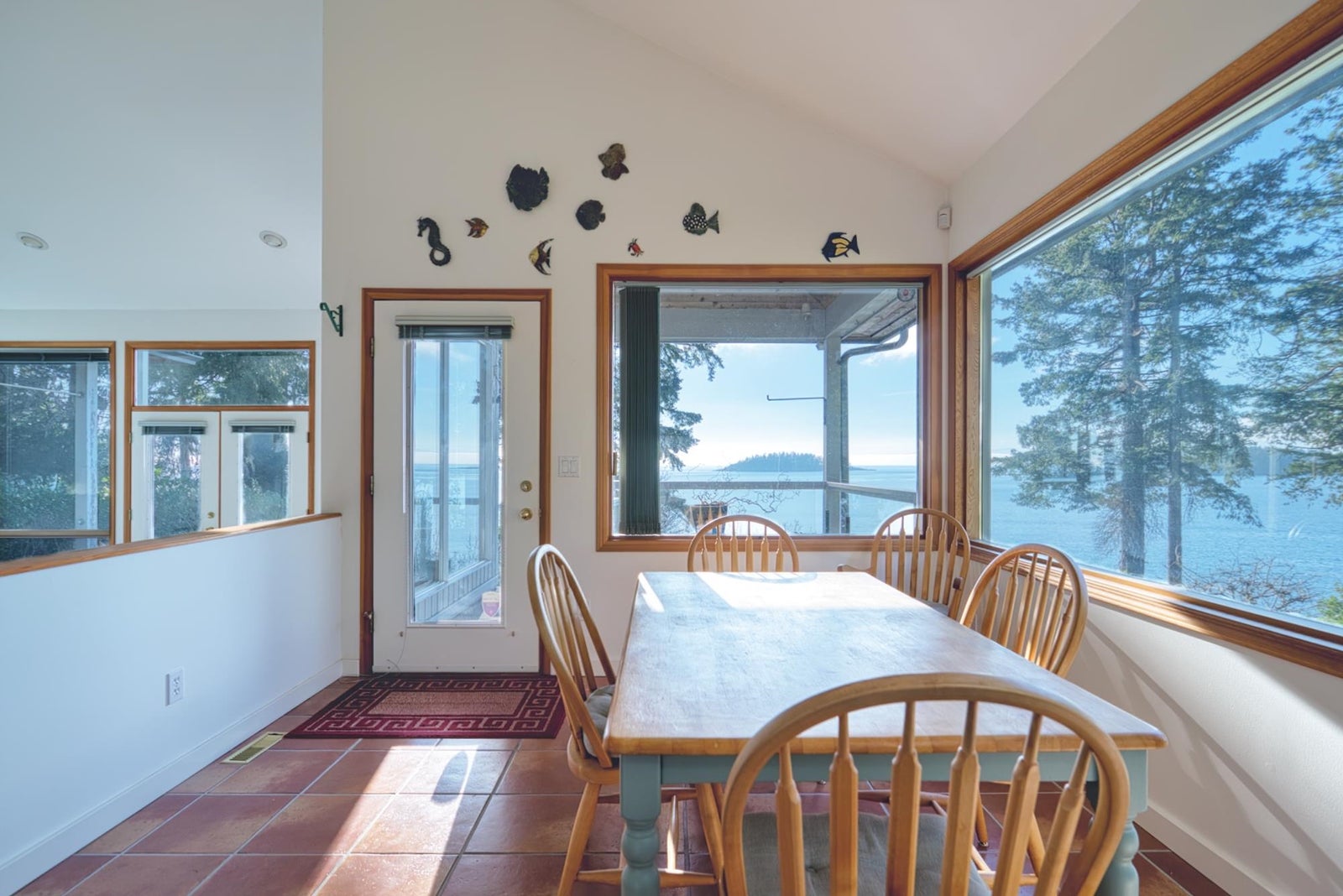 Breathtaking ocean views, captivating sunsets, and all-day-sun - this West Coast waterfront home features 3-beds, 3-baths on .45 acres with easy access to the beach! The large sunken living room is perfect for relaxing, while the expansive kitchen boasts a pantry with abundant storage. Enjoy meals in the roomy dining area with patio access where panoramic ocean vistas await. Upstairs there are two primary bedrooms one with patio doors opening up to stunning outdoor views, plus a cozy fireplace. Both bedrooms have their own ensuites. The main floor offers a 3rd bedroom or den with access to the patio and the level yard. Below is a versatile space ideal for hobbies, a home office, or a studio, complete with a separate entrance, a roughed-in bathroom, and a large utility room.