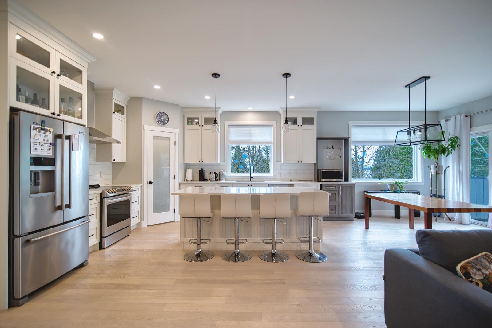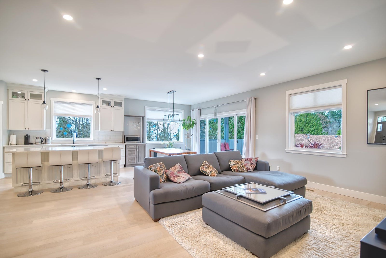 Welcome to this beautifully maintained 4 bed, 2 bath rancher located in the heart of sunny Davis Bay! Offering comfort and style, this home features an open floor plan, 9-foot ceilings, and engineered hardwood floors throughout. The kitchen offers loads of storage, a huge island, induction stovetop & convection oven. The gas forced air heating and on-demand hot water ensure efficient and modern living. Enjoy beautifully landscaped gardens in both the front and back yards (two 1000L rainwater collection barrels complete with a pressure pump system), raised garden boxes for veggies. The large double garage boasts lots of storage and an EV charger. This is a wonderful opportunity to own a spacious, 7-year-old single-level home in one of the Sunshine Coast’s most sought-after neighbourhoods.