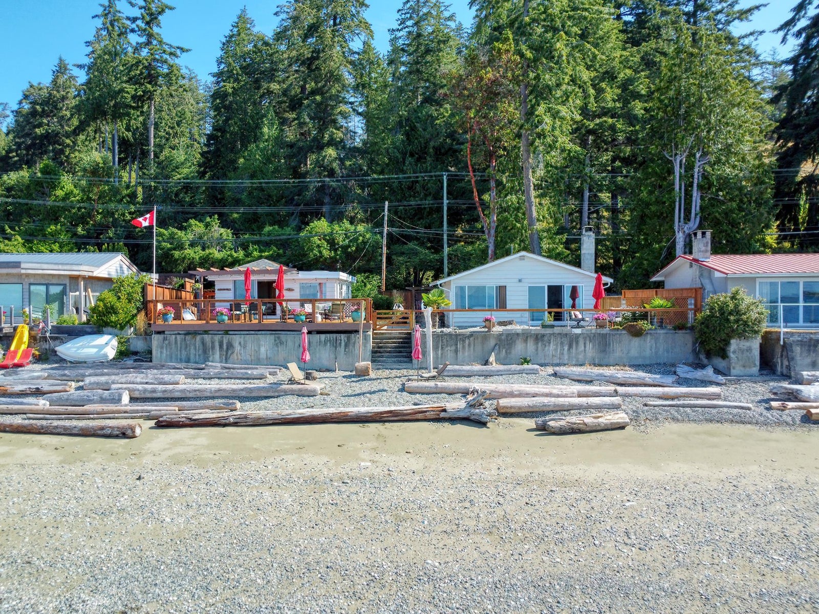 Seize the chance to own this once-in-a-lifetime property with breathtaking views, walk-out waterfront on the finest pebble beach the Sunshine Coast! Featuring two updated beach cabins right at the water's edge. These homes provide a simple, idyllic lifestyle perfect for family gatherings. The outdoor living area is an entertainer's dream! Soak in the hot tub, & relax on the oversized deck, perfect for soaking up the sun, watching the sunset & whales in the most tranquil setting. This property includes upland acreage of 1.38 acres with a garage & ample parking. Privacy fencing surrounds the cabins & the level lot with the beach just steps away offers easy ocean access. Tie your boat to your private Mooring buoy. A rare south/west exposure - amazing value for a truly one-of-a-kind location!
