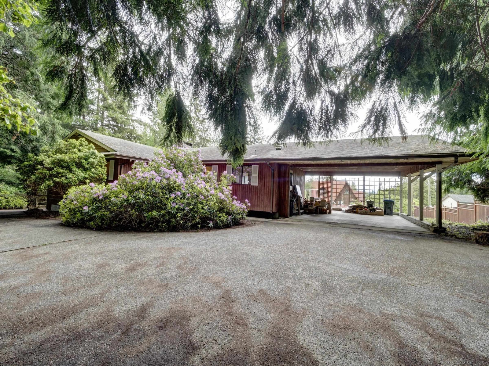 Solidly built 2900+ sq ft 4 bed/3 bath home on a big lot in a great Sechelt cul de sac location. Pre-listing inspection is complete showing no major issues and ready for updating with suite potential. The level entry top floor has 3 bedrooms and two baths, stone fireplace, a spacious south-facing terrace and attached double carport. The lower level is currently configured with one bedroom, full bathroom, extra large living area, stone fireplace, wet bar and a walk-out entrance to the huge front yard with all-day sun for fabulous gardening possibility. Use the existing septic system or connect to the newly installed municipal sewer at the lot line. Call your agent about this great opportunity and to view it in person.