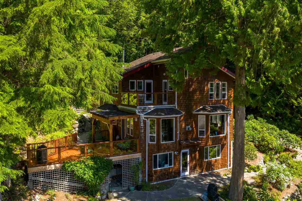 Perched above one of the Sunshine Coasts most scenic areas. This lovely property features true privacy, natural setting and picturesque views of Sechelt Inlet. There are 2 homes on the property. The main home is located at the top of the property. The main floor is level entry with a spacious living and dining area, lovely views and cherry hard wood floors an fireplace. The kitchen is large and open with access to a private sundeck with ocean views. The upper floor has 3 bedrooms and a full bathroom. The master bedroom is spacious with en-suite bathroom and walk in closet and access to a private deck. The lower level is a walk out basement with large recreation room, office and a full bathroom. The additional building dream garage/shop and 1100 sqft 2 bedroom suite above.