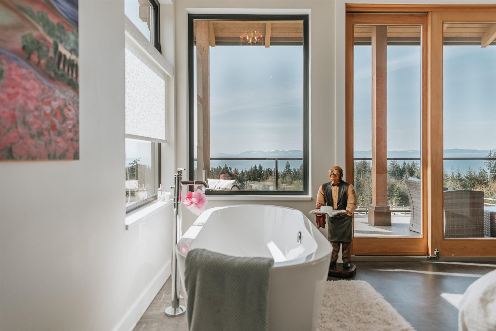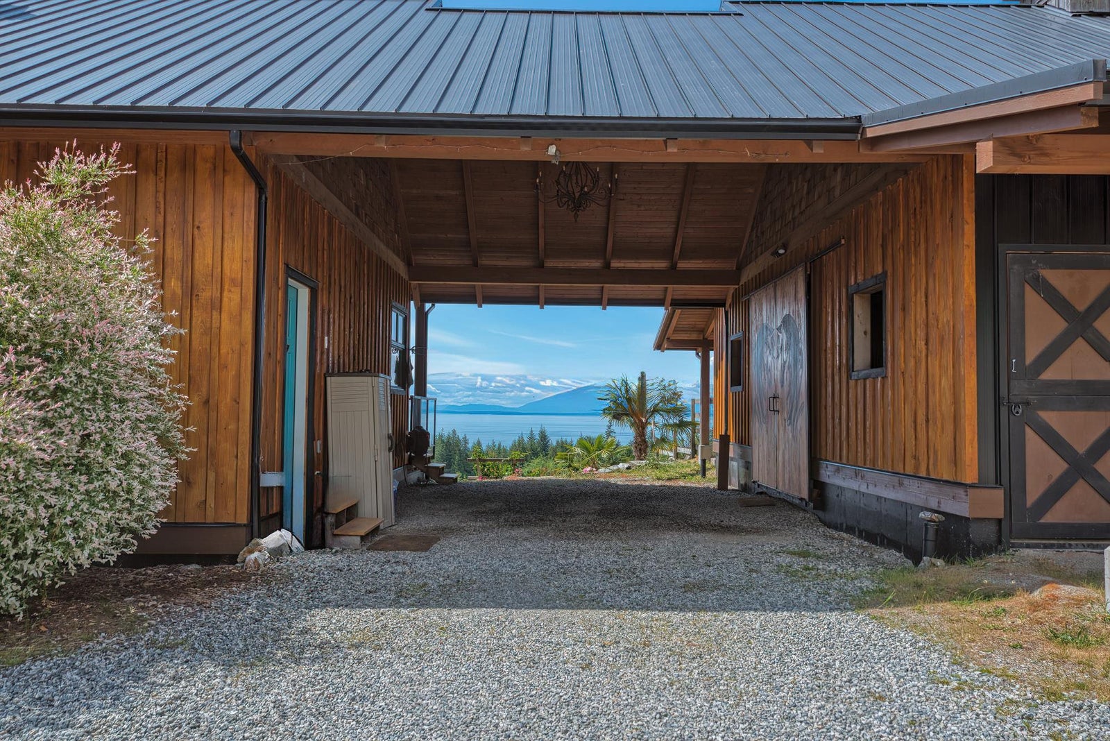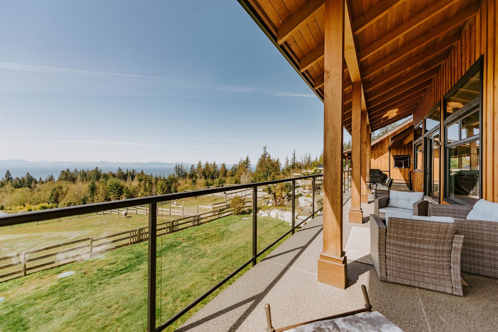 An unparalleled opportunity to own this stunning, custom-built home designed to capture panoramic ocean views from every angle. Expertly crafted to offer spacious living and dining areas that seamlessly flow into the chef's kitchen. Enjoy all seasons on the expansive covered deck that spans the length of the home. The spacious primary bedroom, boasts a deep soaker tub where you can watch sun rise or set, and the spa-like ensuite is complete with a rain shower. The lower level features a large rec area, 2 more bedrooms, a kitchenette, office, and a full bath. Never be out of water as the property boasts a drilled and shallow well. A haven for recreational enthusiasts & equestrian lovers! Build a second full-size ocean view home. A large Koi pond adds to beauty of this magical property.