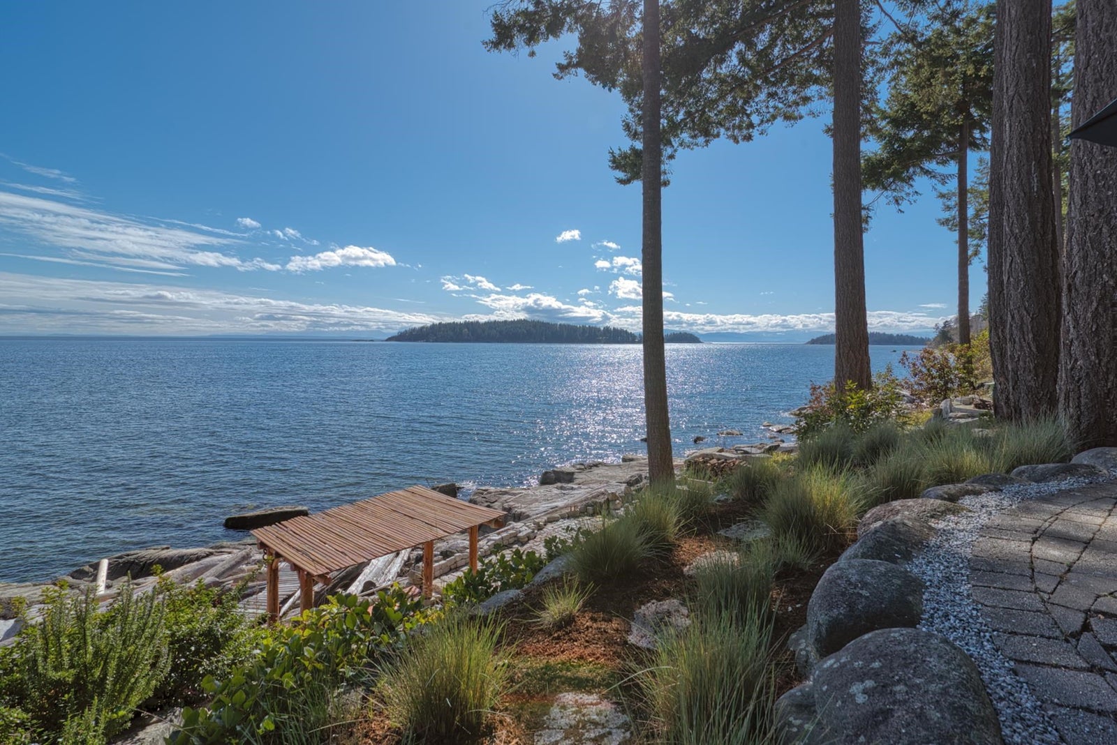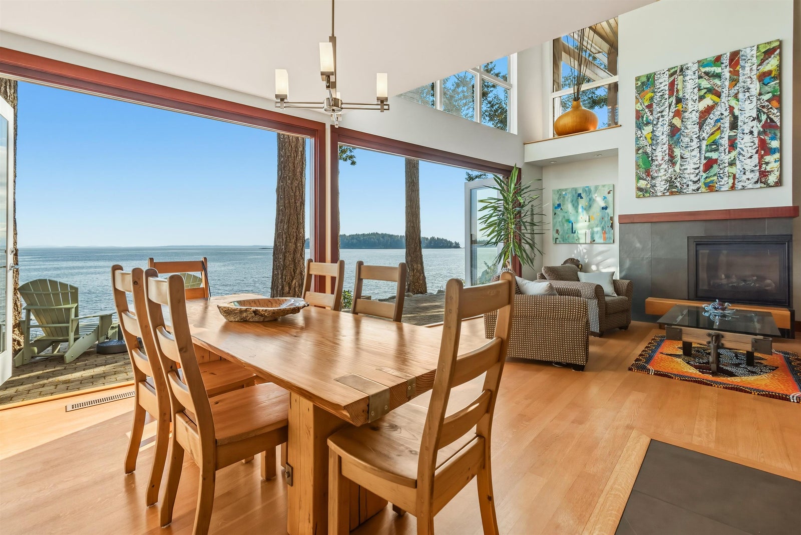 Experience refined waterfront living in prestigious Silverstone. This custom-built home showcases 20’ ceilings, expansive 17’ Eclipse doors, and stunning views of the Salish Sea, Vancouver Island, and the Trail Islands. Thoughtfully designed with white oak floors, fir cabinetry, geothermal heating and cooling, and premium finishes throughout. Heavily insulated media room with coffered ceilings. Roughed in for natural gas back up generator. Enjoy seamless indoor-outdoor living with multiple viewing areas, an oceanside fire pit, and direct access to the water for kayaking, paddle boarding, or diving. Watch eagles, whales, and unforgettable sunsets from your own private retreat. Just a short walk to Sechelt, this is coastal living at its finest.